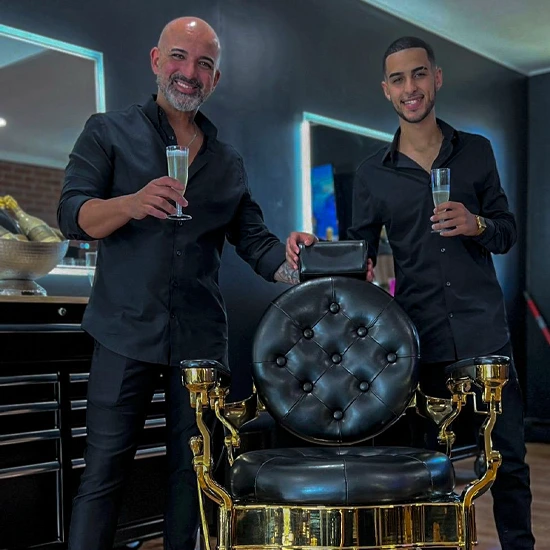 His dream was to come to the United States and revolutionize the world of barbering for everyone. His mission was, and still is, to offer personalized service and a space designed not only to build customer loyalty, but to win every one of them, guaranteeing their satisfaction no matter which chair they sit in. His dreams and goals have been passed down from father to son, and today his son Pedro is following in his father’s footsteps, side by side, building both a legacy and a goal to provide an unforgettable experience for his clients.